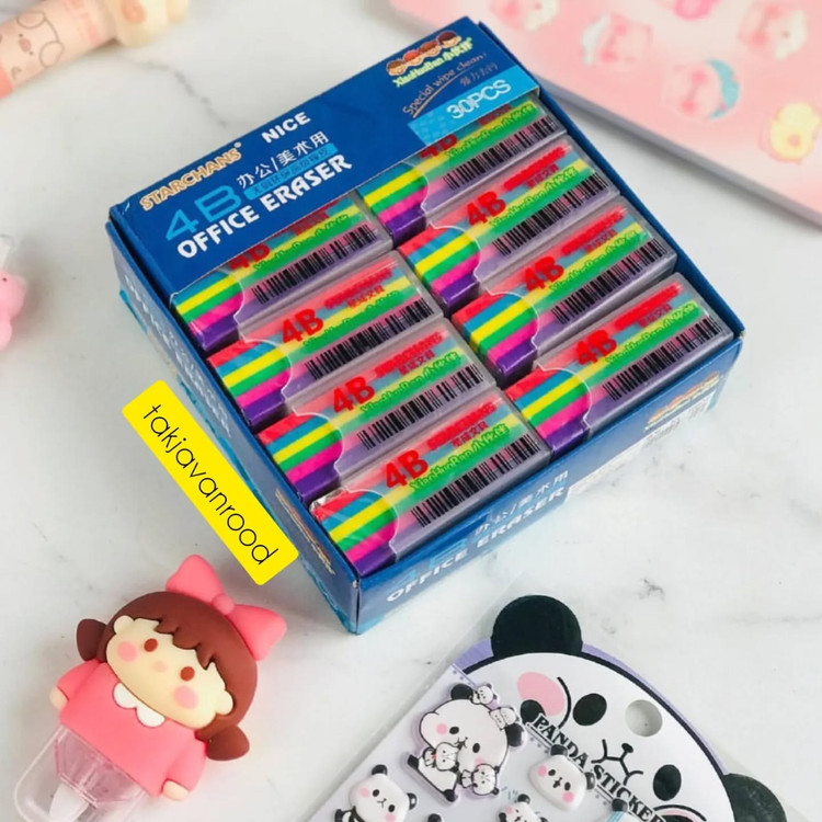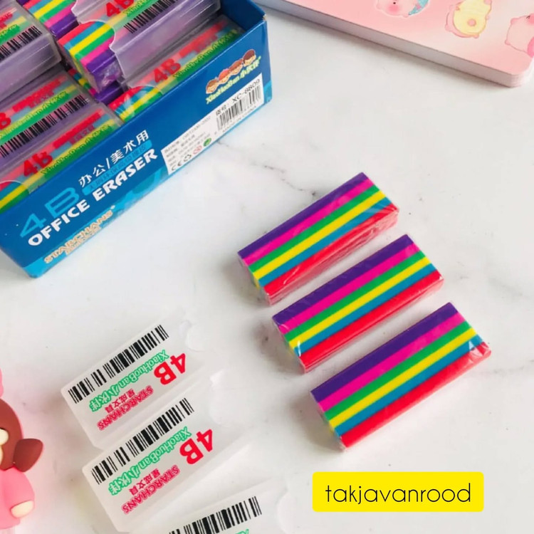 پاکن عطری رنگین کمان غلاف دار کیفیت شون عالیه عطری و یه بوی گل خیلی خوب میدن سایز بزرگ هستن غلاف دارن (نه پاکن کثیف میشه نه جامدادی تون )